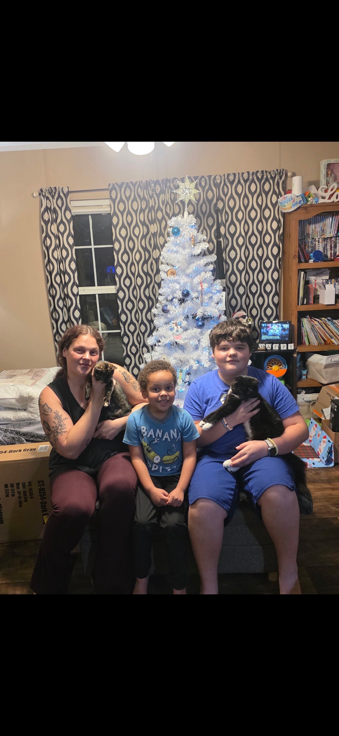 Once they were old enough to eat on their own, Corrie decided her family needed a cat! She & her family took Maverick and he immediately bonded with Corrie’s youngest son! A few days later, the family decided to take Goose as well so the two siblings could stay together for life!