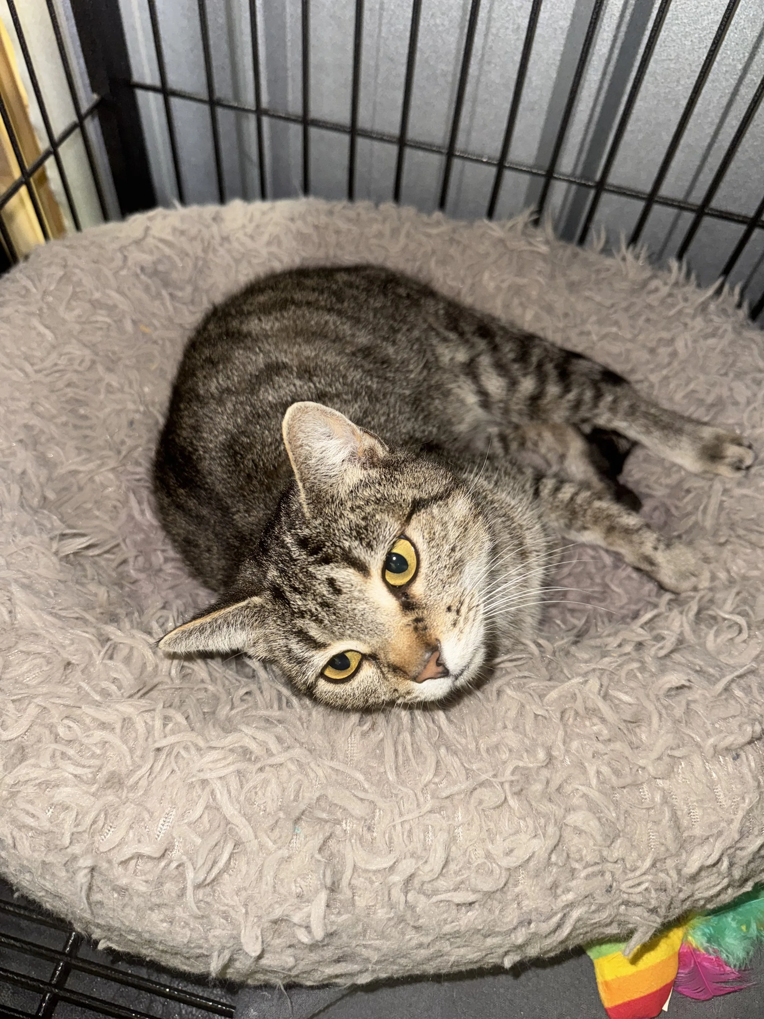 Since arriving in our care, Poppy has been blossoming more each day—just like her name suggests! What may have started as a cautious backyard adventure has turned into a journey of comfort, care, and discovering how nice indoor life can be. She’s a sweet young cat with bright, curious eyes and a gentle spirit.