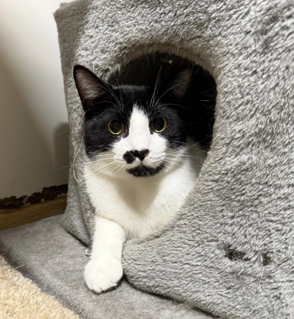 Tux is a confident and loving cat who will immediately make himself at home in your heart. He has a laid-back, affectionate nature and enjoys cuddles, chin scritches, and cozy spots to lounge. He’s also curious and playful, always ready for a game of chase or some fun with his favorite toys. Whether he’s relaxing with you or exploring his surroundings, Tux is a steady companion who’ll bring warmth and joy to any household.