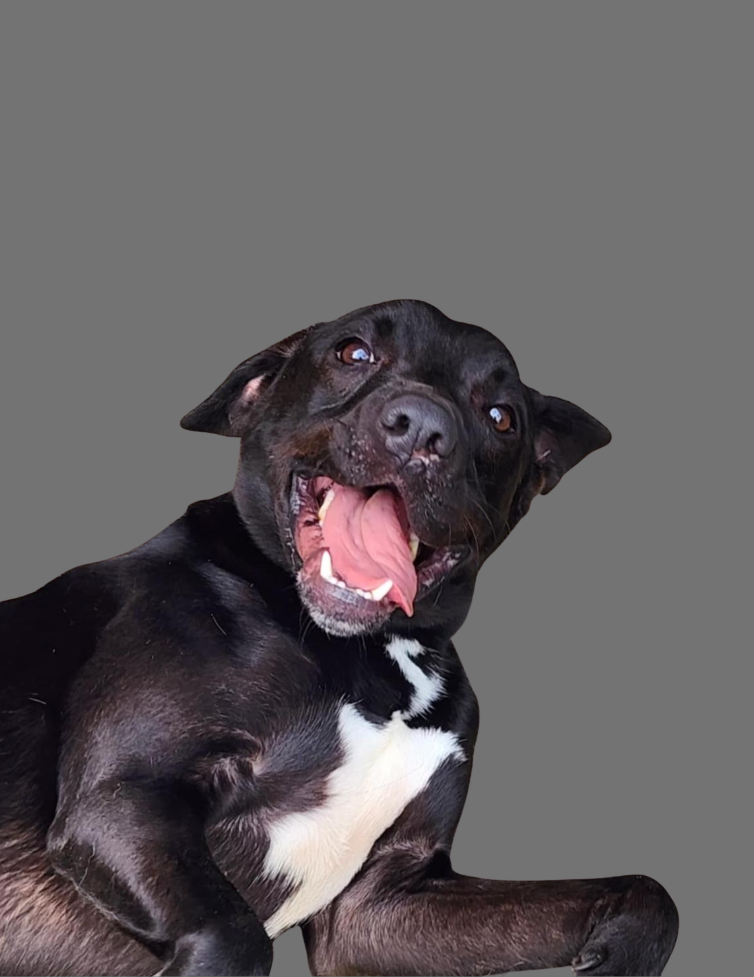 Bandit has truly never met a stranger. He loves other dogs, doesn’t mind cats, and is great with kids. He absolutely loves to play and has a special bond with his buddy Bo—maybe they recognize something familiar in each other’s stories. Whatever the reason, Bandit is thriving.