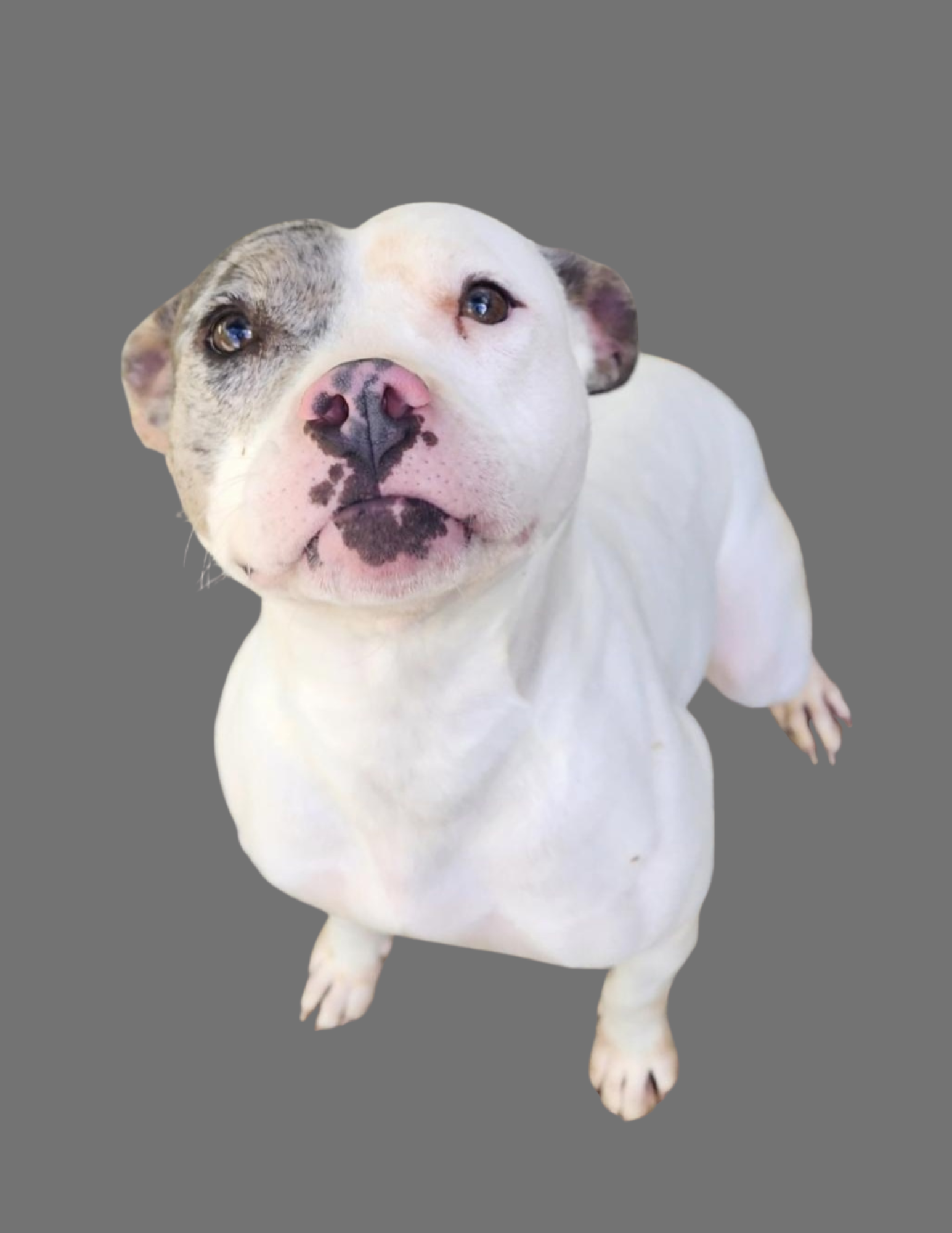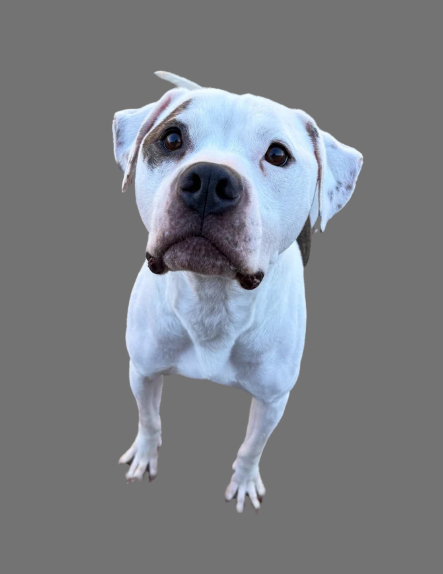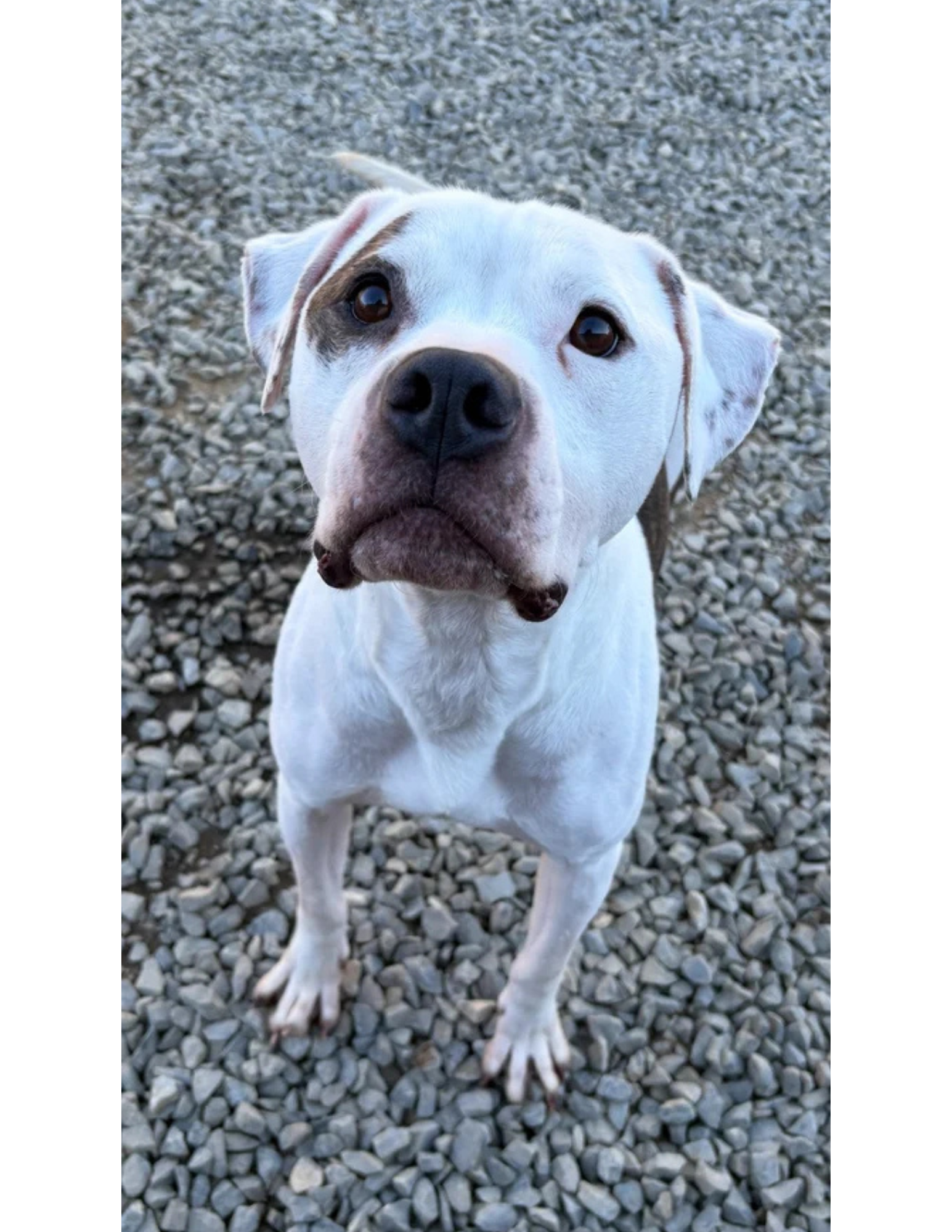 This handsome Staffordshire/Pittie mix came to us with his companion, Juliet. These two loving souls came from a difficult situation, and we were grateful for the chance to step in and give them a fresh start. Romeo is as sweet as they come with people — affectionate, loyal, and eager to please. He can be a bit cautious around other animals, so he’d thrive as the only dog in a calm, caring home where he can feel safe and loved. With patience and consistency, Romeo will blossom into the devoted companion he’s meant to be.