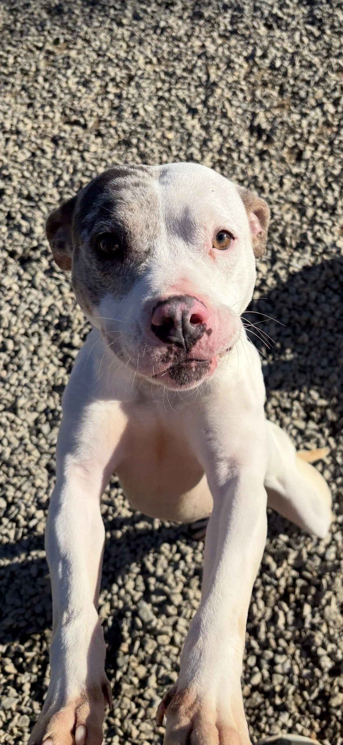 Chibs is the definition of sweetness — he leans in for affection, melts under a good scratch, and looks at you with eyes that tell you he just wants to belong. But don’t let his tender heart fool you: this boy is full of energy and joy. He loves to run, explore, and stretch his legs, and he truly thrives when he has space to be himself. A home with property, a fenced yard, or plenty of room to roam would be a dream come true for him.