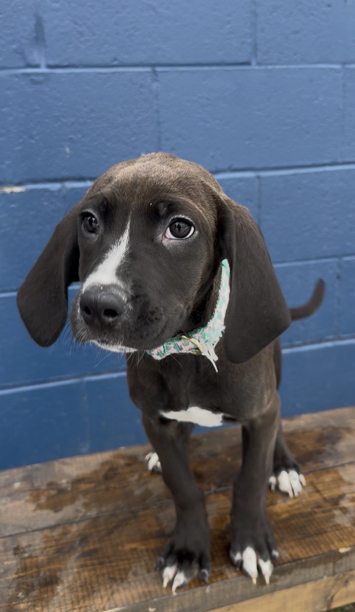 Meet one of our newest rescues! This 6 month old, intact male, cryptorchid, Hound mix joined our Posh family recently! He is wonderful with other dogs, but dislikes cats at the moment. We will see if we can fix this, but he may need a home with no cats.