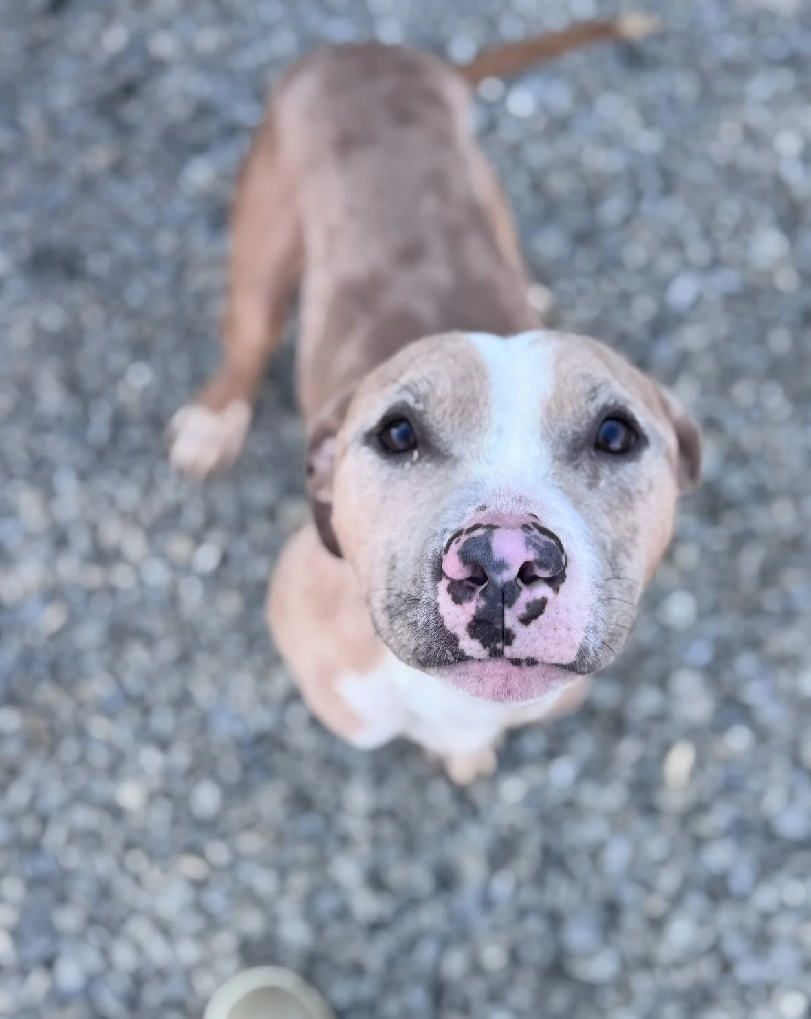 He is a gentle, soulful boy with so much love to offer. Roscoe thrives on kindness, routine, and human connection, and he shows just how loyal and devoted he can be once he feels safe. Like many dogs who have been through a lot, he just needs someone willing to see his heart and give him the chance to bloom.