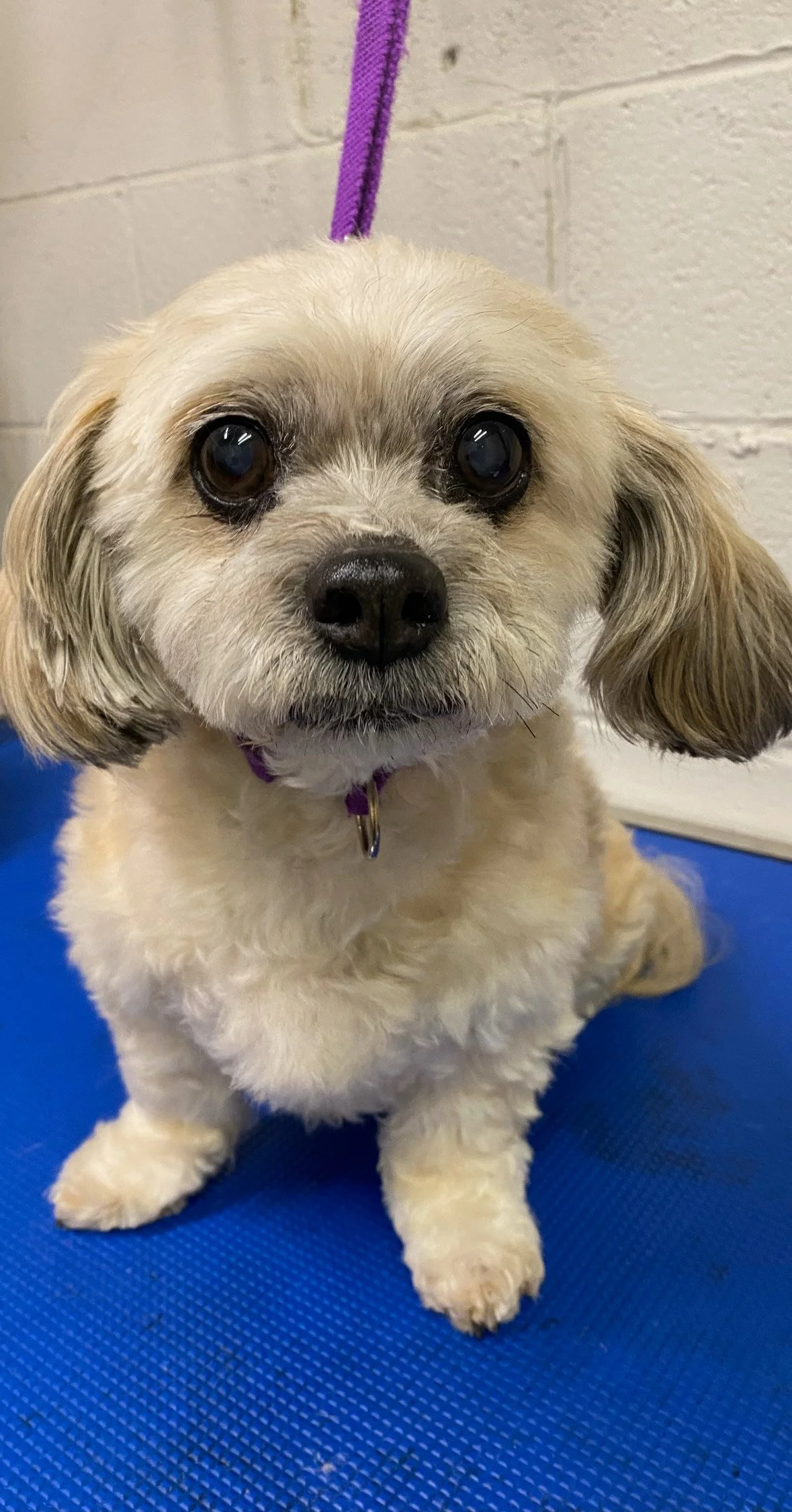 Maggie was a patient at the veterinary clinic where Robin previously worked. When our resort opened, her family began bringing her to us for boarding and grooming, and it didn’t take long for Maggie to steal everyone’s hearts. She quickly became a staff favorite and earned the affectionate nickname “baby grandma.”